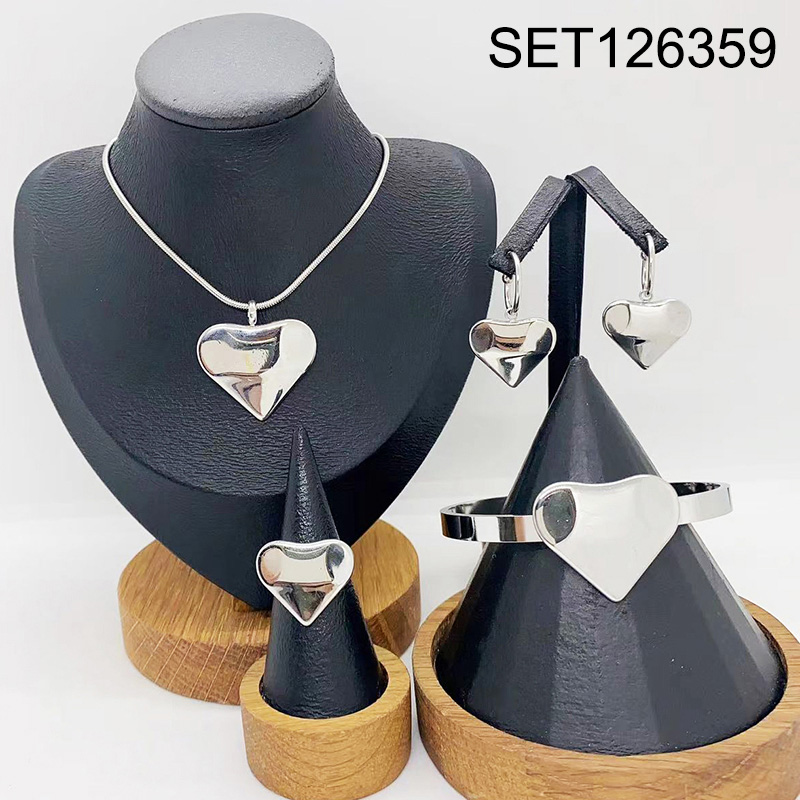 Level B Stainless Steel New Trendy Women Jewelry Heart Steel color 4pcs SET