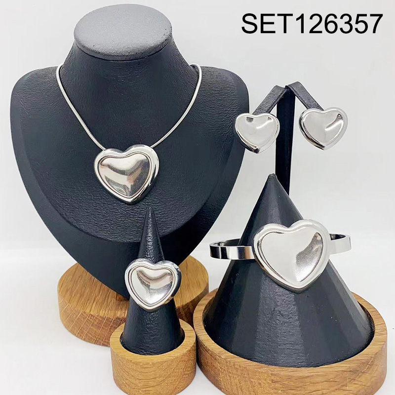 Level B Stainless Steel New Trendy Women Jewelry Heart Steel color 4pcs SET