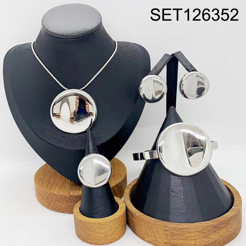 Level B Stainless Steel New Trendy Women Jewelry Round Steel color 4pcs SET