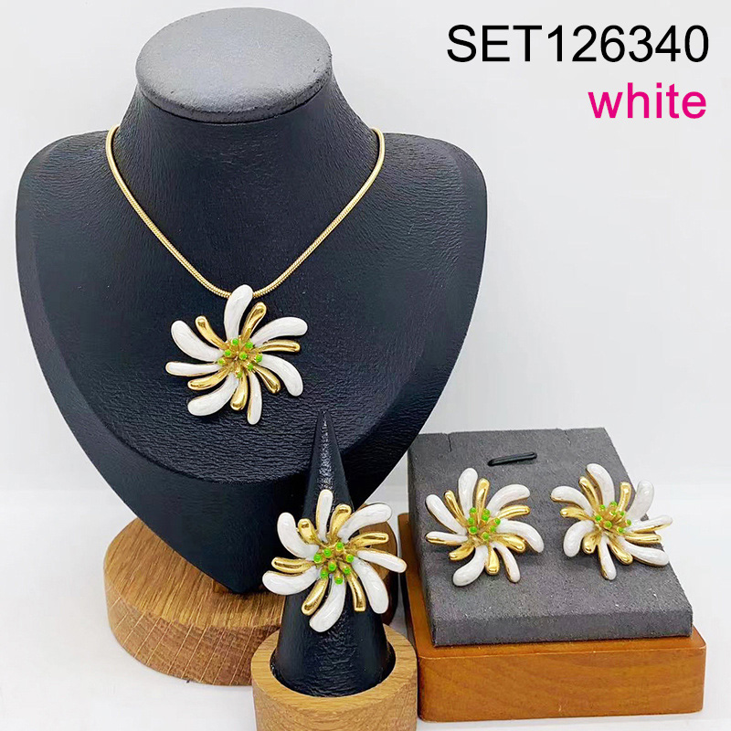 Level B Stainless Steel New Trendy Women Jewelry Drip Oil/Enamel White Flower Golden 3pcs SET