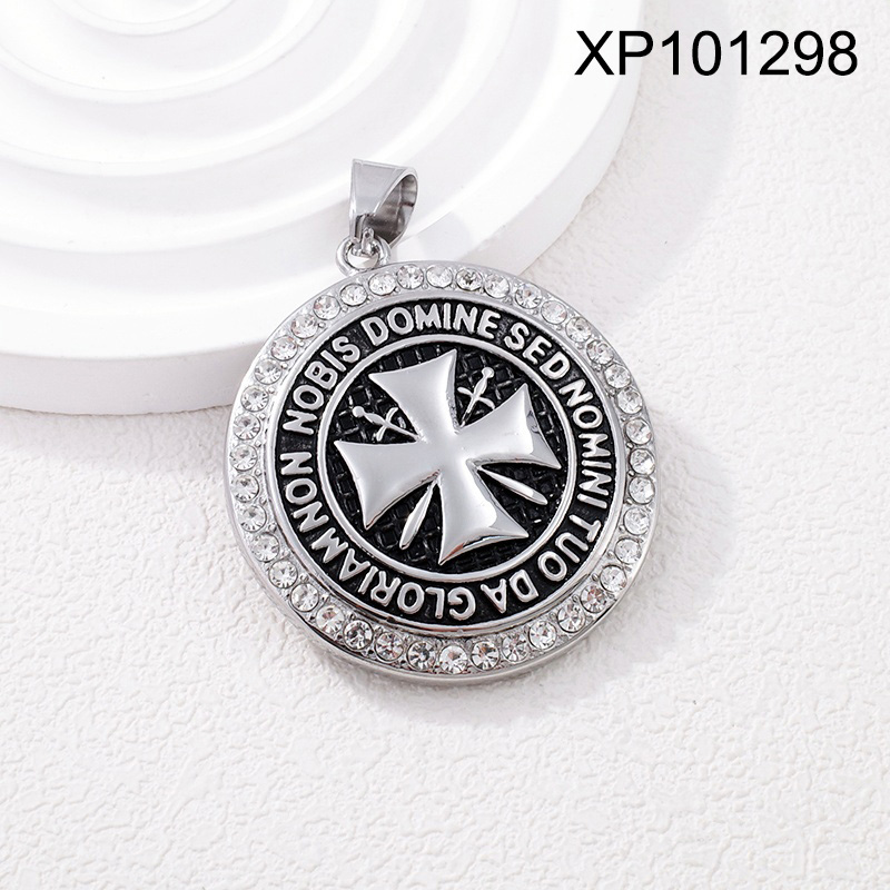 Level B Stainless Steel New Trendy Man Jewelry Steel color Knights Templar Pendant