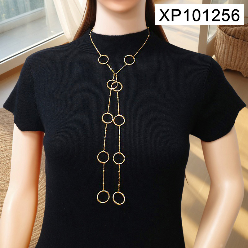 Home > Level A Stainless Steel New Trendy Women Jewelry Round Golden Sweater Chain Pendant