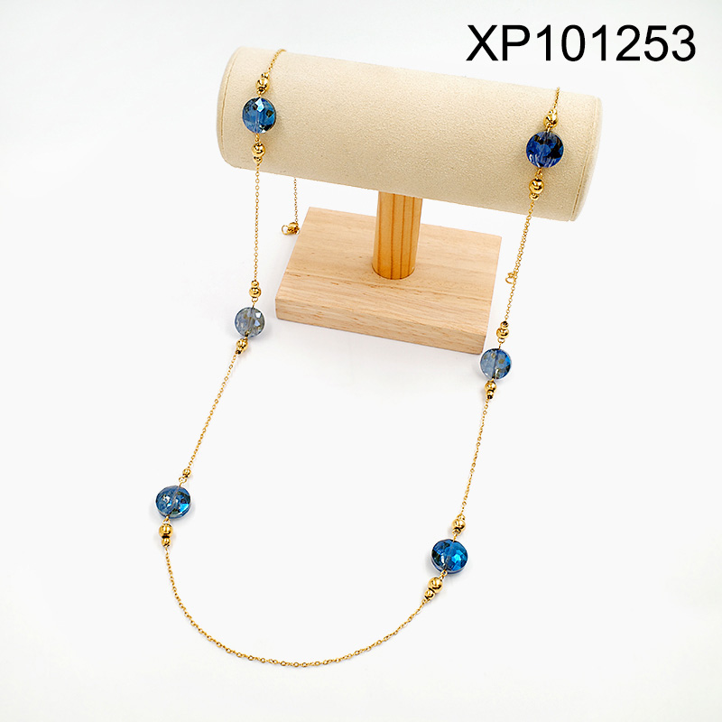 Home > Level A Stainless Steel New Trendy Women Jewelry Round Golden Sweater Chain Pendant