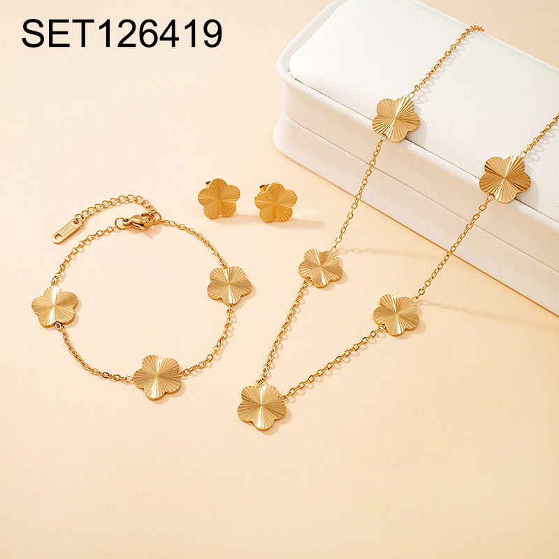 Home > Level A Stainless Steel New Trendy Women Jewelry Flower Golden 3pcs SET