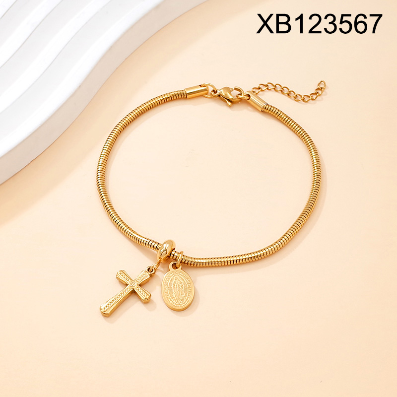 Level B Stainless Steel New Trendy Women Jewelry Religion Cross Golden Bracelet