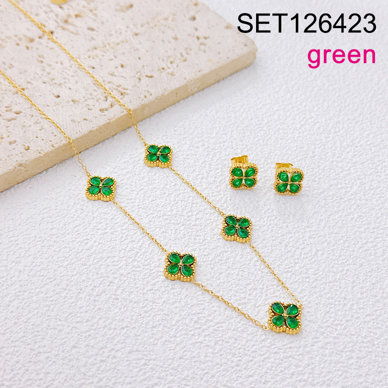 Home > Level B Stainless Steel New Trendy Women Jewelry Sticky Stone Green SYC Golden SET