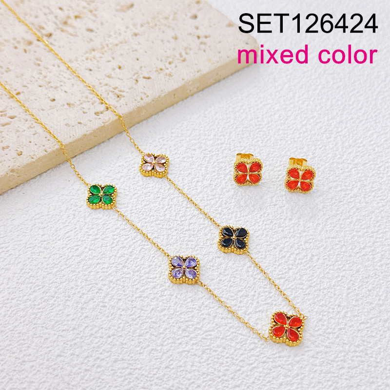Level B Stainless Steel New Trendy Women Jewelry Sticky Stone Mixed color SYC Golden SET