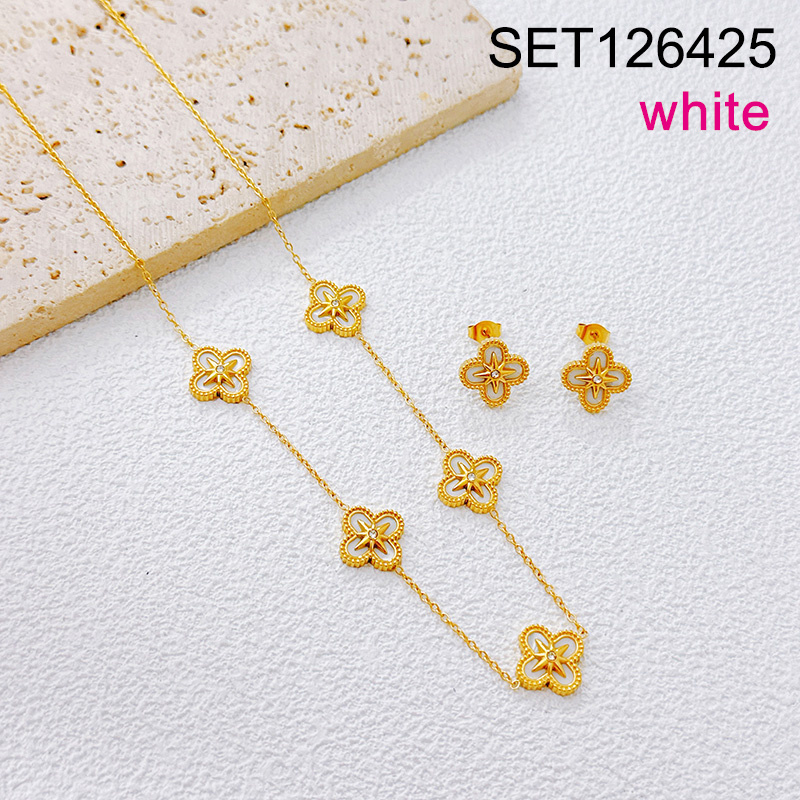 Level B Stainless Steel New Trendy Women Jewelry White SYC Eight-Pointed Star Golden SET