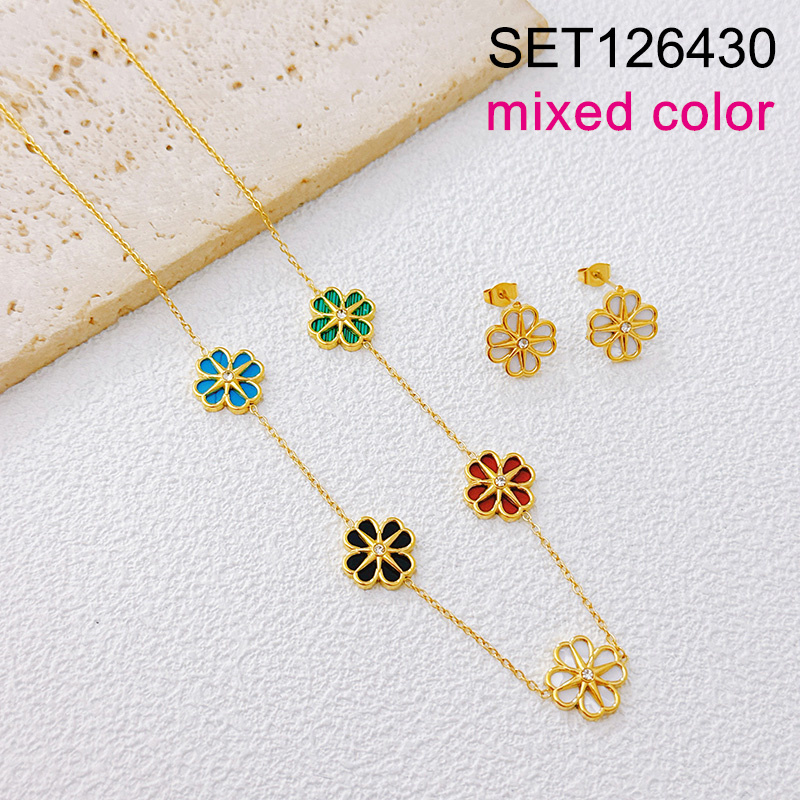 Home > Level B Stainless Steel New Trendy Women Jewelry Mixed color SYC Eight-Pointed Star Golden SET