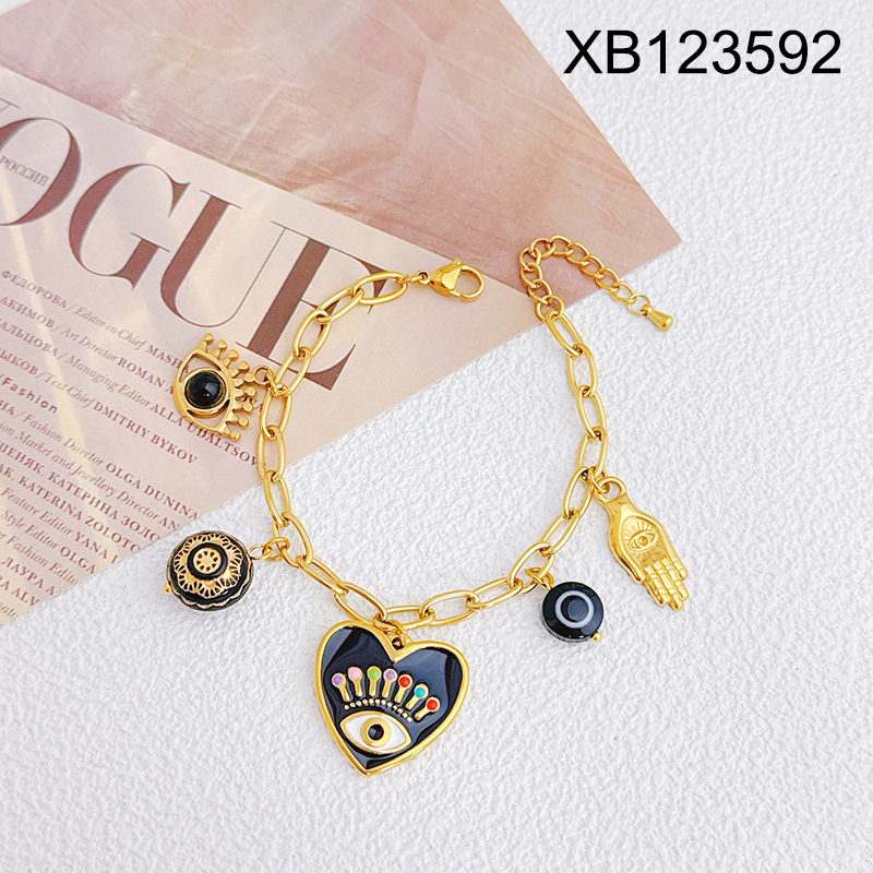 Home > Level B Stainless Steel New Trendy Women Jewelry Drip Oil/Enamel Heart Eye Hand Golden Bracelet