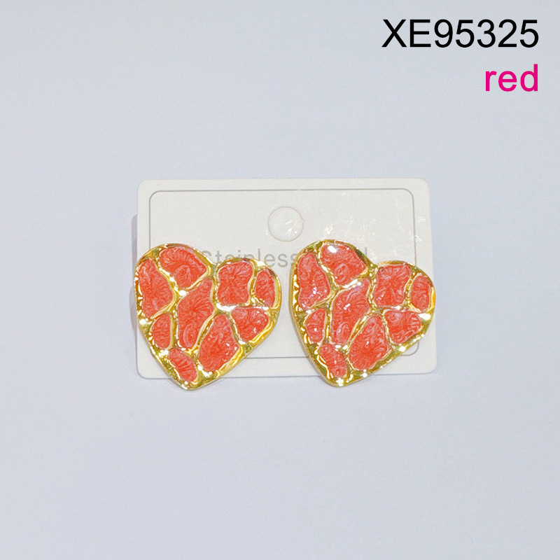 Home > Level C Stainless Steel New Trendy Women Jewelry Pearl Style/Plastic Beads Drip Oil/Enamel Red Heart Golden Earrings