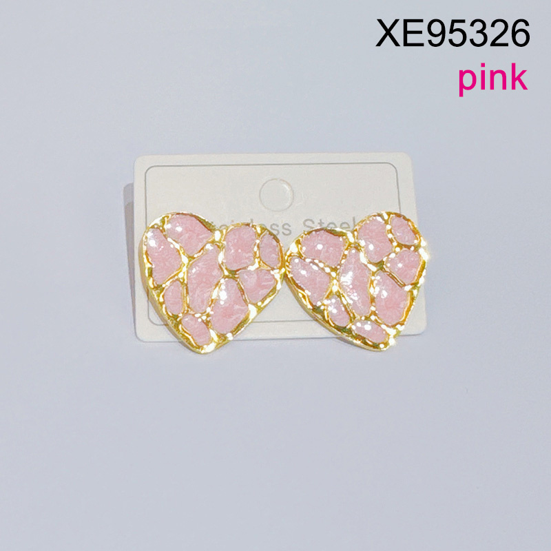 Home > Level C Stainless Steel New Trendy Women Jewelry Pearl Style/Plastic Beads Drip Oil/Enamel Pink Heart Golden Earrings