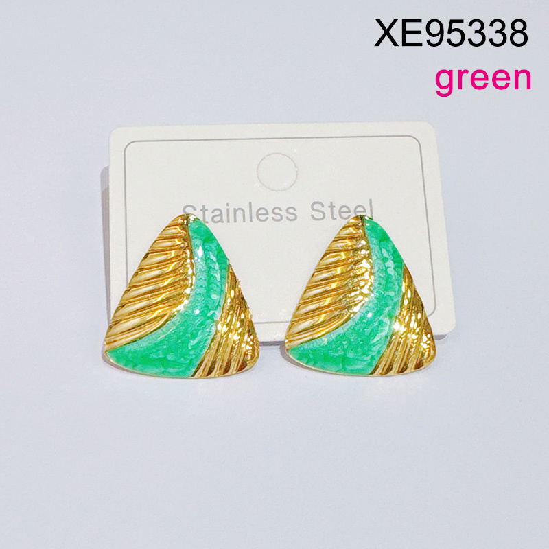 Home > Level C Stainless Steel New Trendy Women Jewelry Drip Oil/Enamel Green Triangle Golden Earrings