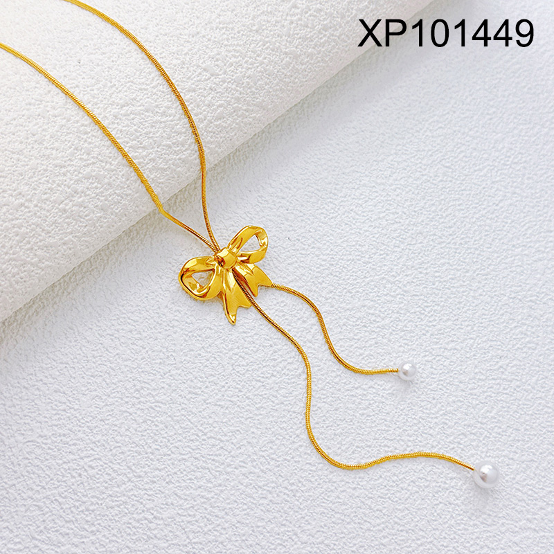 Level B Stainless Steel New Trendy Women Jewelry Pearl Style/Plastic Beads Bowknot Golden Pendant