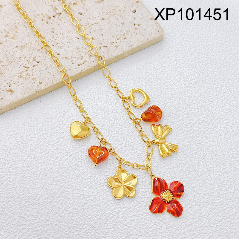 Level B Stainless Steel New Trendy Women Jewelry Drip Oil/Enamel Flower Bowknot Heart Golden Pendant