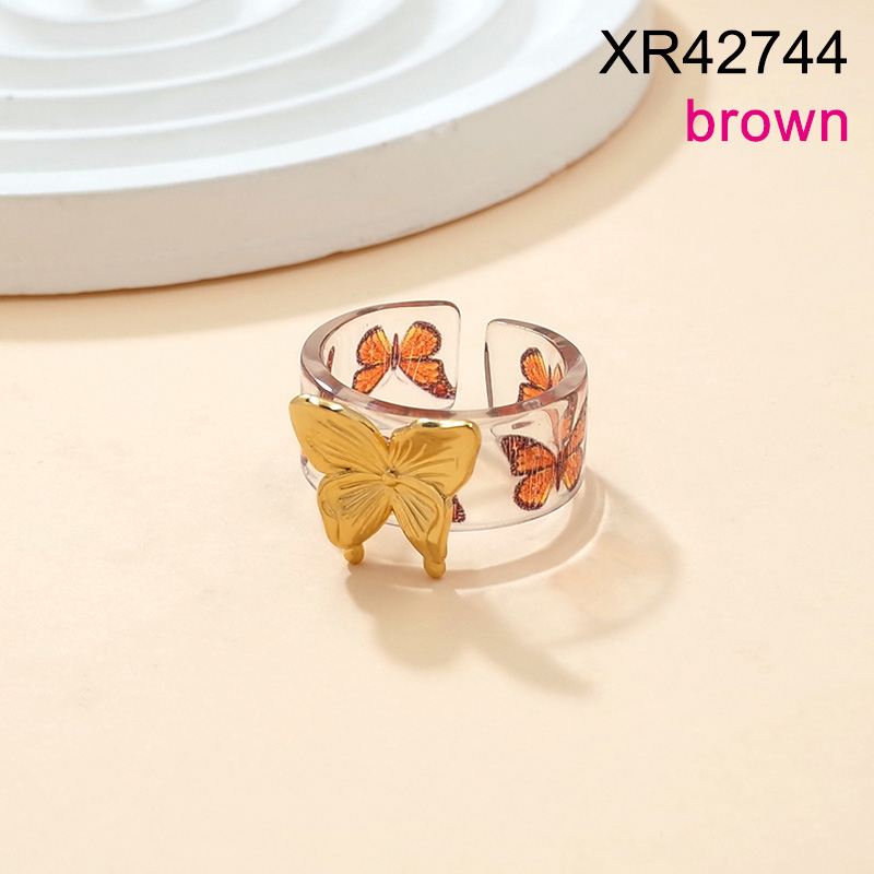Level B Stainless Steel New Trendy Women Jewelry Animal Brown Butterfly Golden Open Rings;Ring size can be adjusted freely