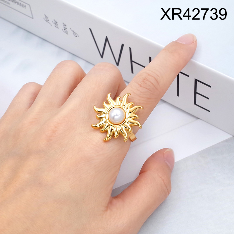 Level B Stainless Steel New Trendy Women Jewelry Pearl Style/Plastic Beads Sun Golden Open Rings;Ring size can be adjusted freely