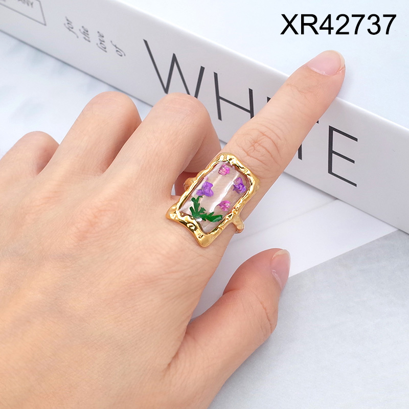 Home > Level B Stainless Steel New Trendy Women Jewelry Rectangle Flower Golden Open Rings;Ring size can be adjusted freely