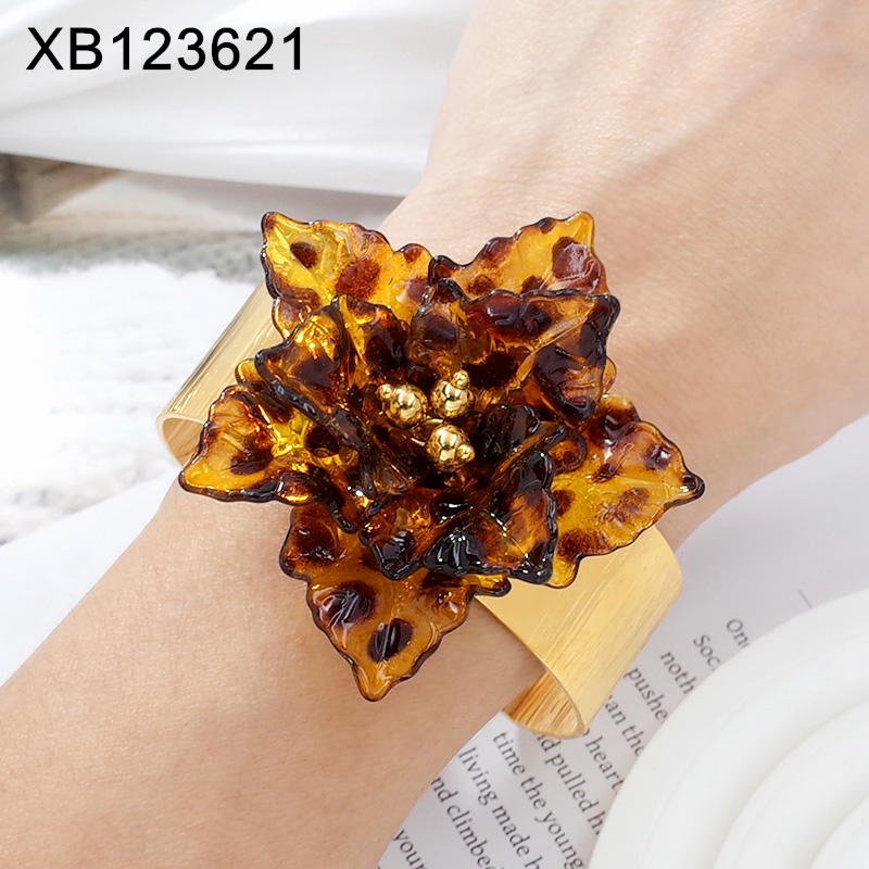 Level B Stainless Steel New Trendy Women Jewelry Flower Golden Open Bangle;Bangle size can be adjusted freely