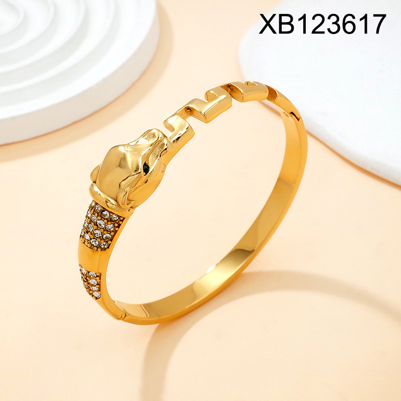 Level B Stainless Steel New Trendy Women Jewelry Animal Leopard Golden Bangle