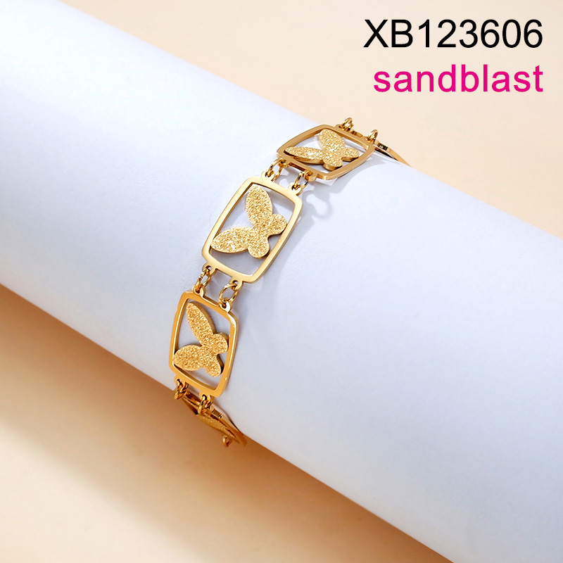 Level B Stainless Steel New Trendy Women Jewelry Sandblast Animal Butterfly Golden Bracelet