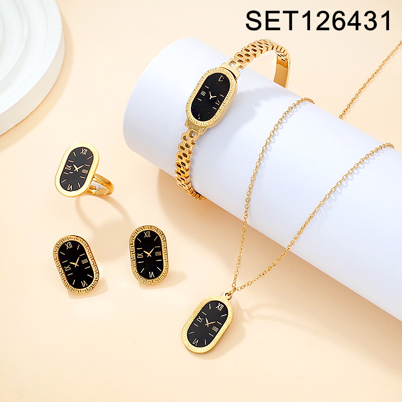 Home > Level B Stainless Steel New Trendy Women Jewelry Great Wall Pattern Roman Numeral Golden 4pcs SET