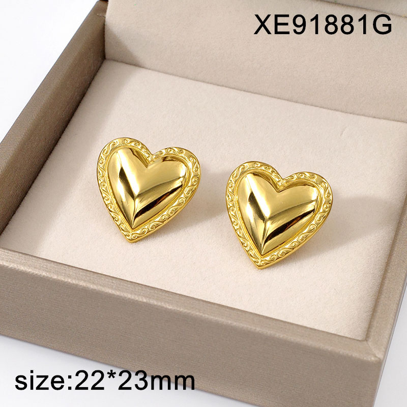 Home > Level A Stainless Steel Jewelry New Trendy Heart Golden Valentine's Day Earrings