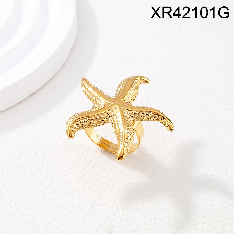 Level A Stainless Steel New Trendy Women Jewelry Summer beach Animal Starfish Golden Open Rings;Ring size can be adjusted freely