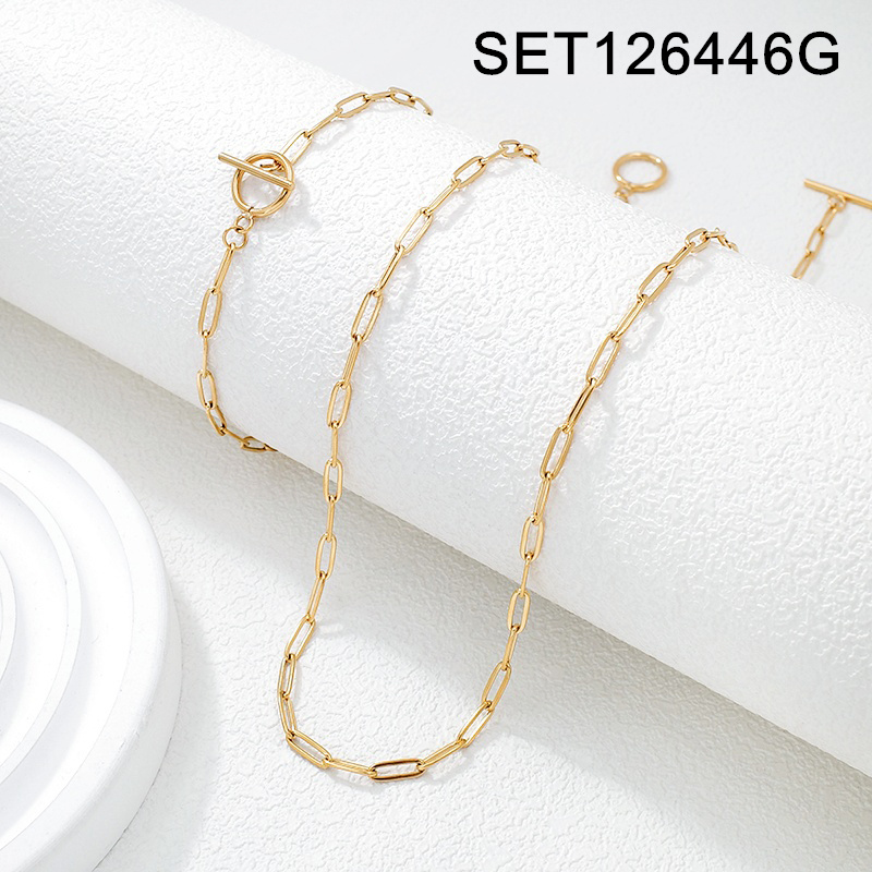 Home > Level A Stainless Steel New Trendy Women Jewelry Golden Chain SET