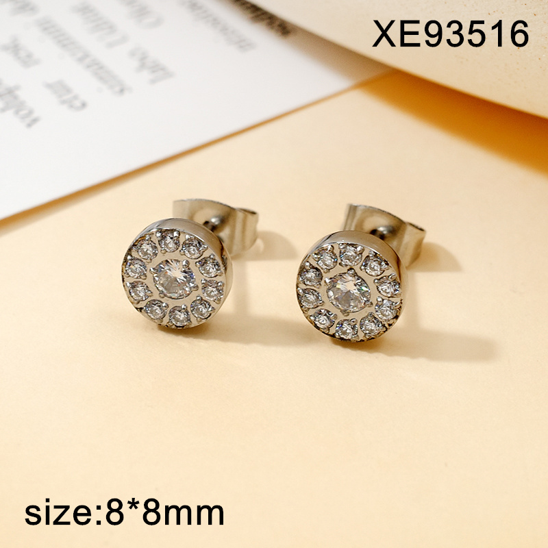 Home > Level A Stainless Steel New Trendy Women Jewelry Lnlaid Stone Round Steel color CNC Earrings