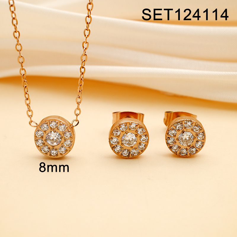 Home > Level A Stainless Steel New Trendy Women Jewelry Lnlaid Stone Round Rose gold CNC SET