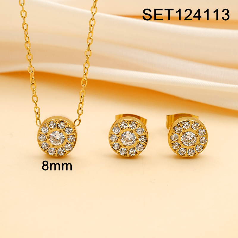 Home > Level A Stainless Steel New Trendy Women Jewelry Lnlaid Stone Round Golden CNC SET