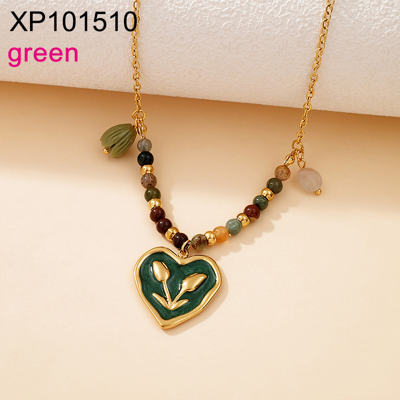 Level B Stainless Steel New Trendy Women Jewelry Drip Oil/Enamel Green Heart Golden Pendant