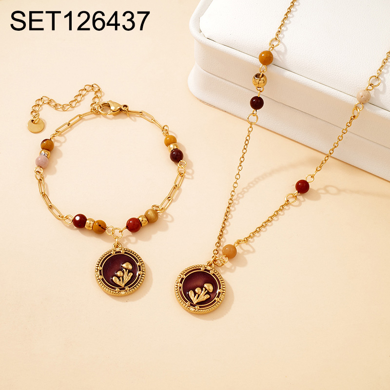 Level B Stainless Steel New Trendy Women Jewelry Drip Oil/Enamel Round Golden Chain SET