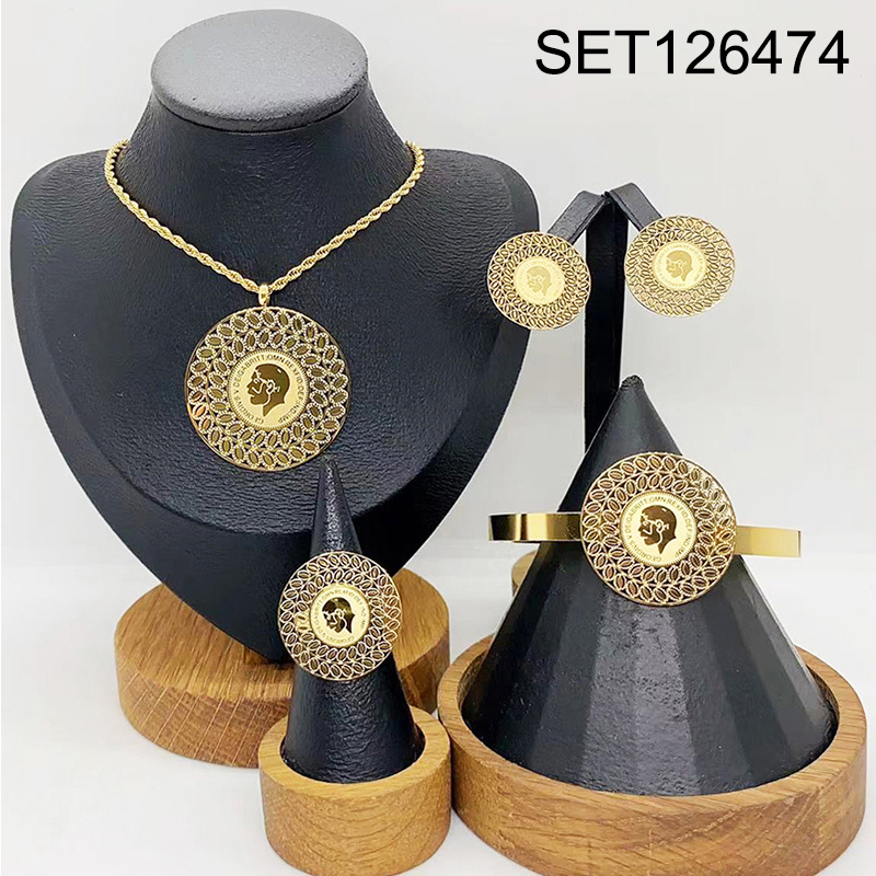 Level B Stainless Steel New Trendy Women Jewelry Coin People Golden 4pcs SET