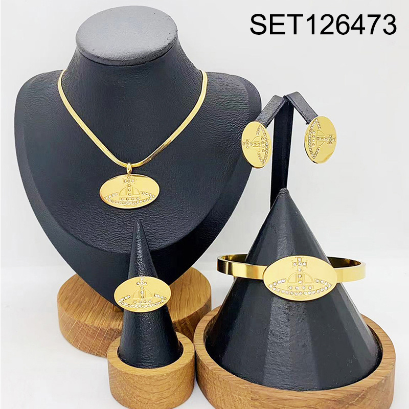 Level B Stainless Steel New Trendy Women Jewelry Oval Golden 4pcs SET