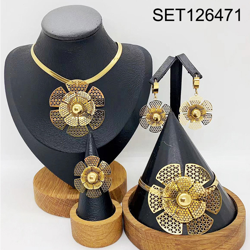 Level B Stainless Steel New Trendy Women Jewelry Flower Golden 4pcs SET