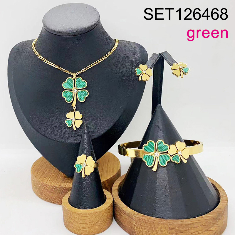 Level B Stainless Steel New Trendy Women Jewelry Green SYC Golden 4pcs SET