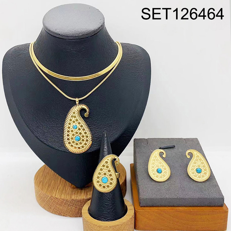Level B Stainless Steel New Trendy Women Jewelry Two Layers Chain Water Drip Golden 3pcs SET