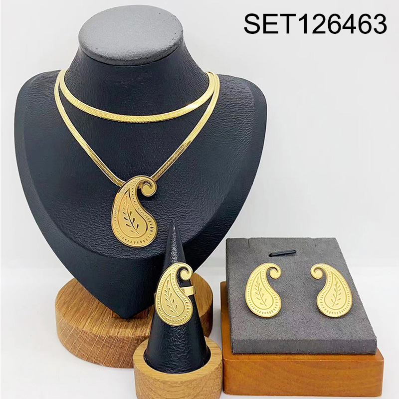 Level B Stainless Steel New Trendy Women Jewelry Two Layers Chain Water Drip Golden 3pcs SET