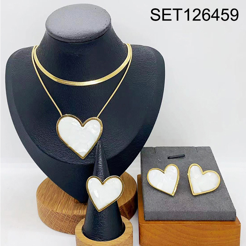 Level B Stainless Steel New Trendy Women Jewelry Two Layers Chain Heart Golden 3pcs SET