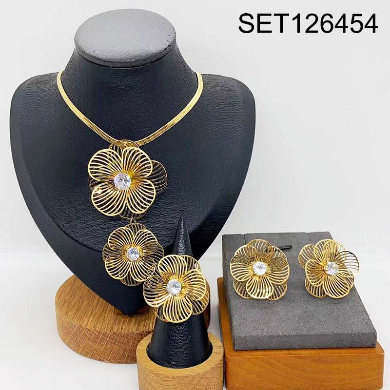 Level B Stainless Steel New Trendy Women Jewelry Flower Golden 3pcs SET