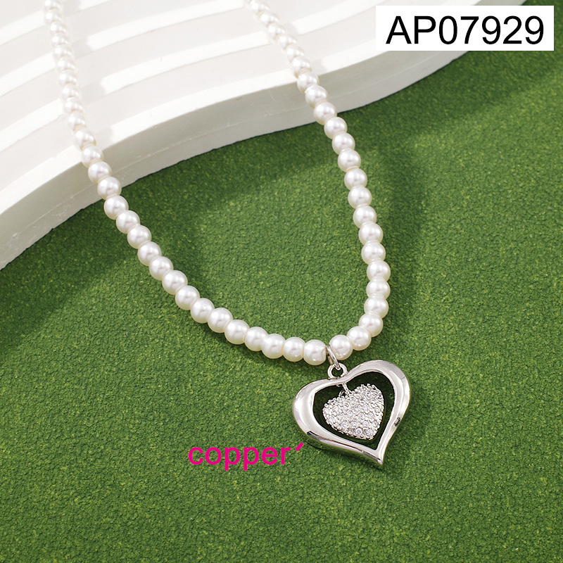 Level B Fashion Jewelry New Trendy Women Jewelry Pearl Style/Plastic Beads Heart Steel color Pendant;Material:copper (cobre)