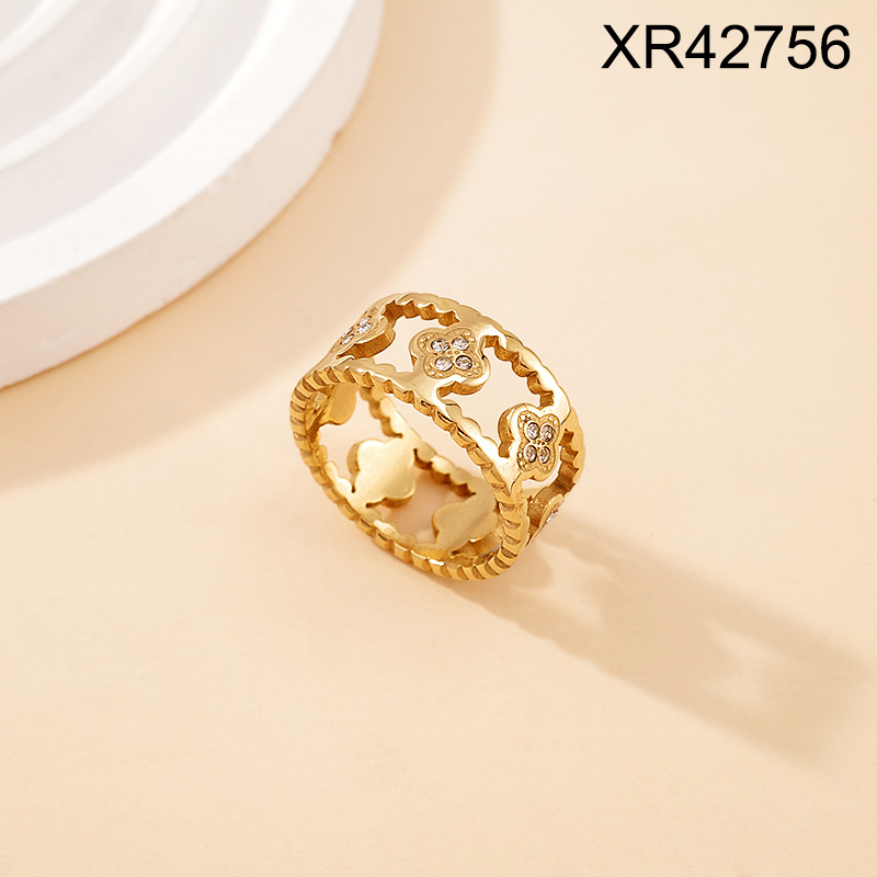 Home > Level B Stainless Steel New Trendy Women Jewelry Sticky Stone Golden Rings