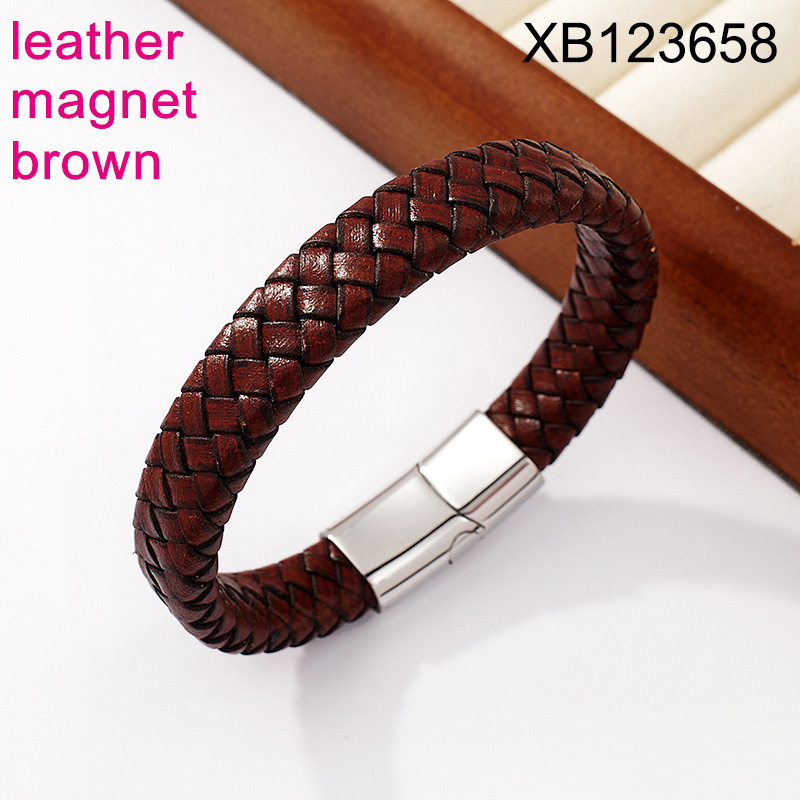 Home > Level B Stainless Steel New Trendy Man Jewelry Steel color Magnet buckle Brown Leather Bracelet