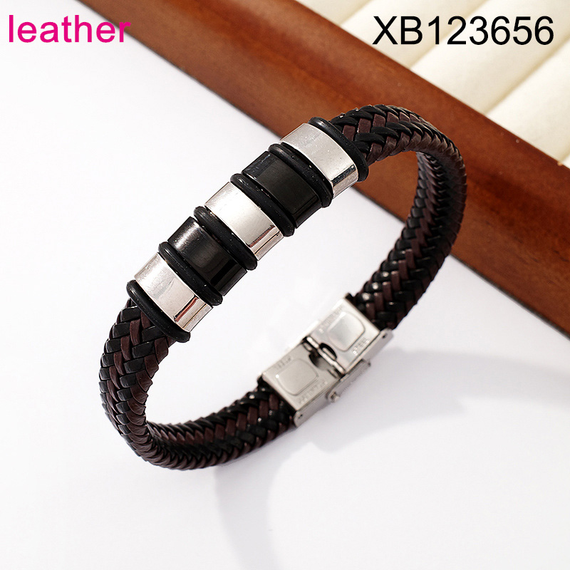 Home > Level B Stainless Steel New Trendy Man Jewelry Two Tone Leather Bracelet