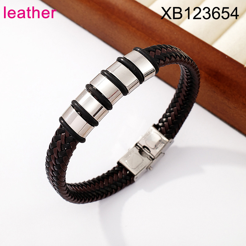 Level B Stainless Steel New Trendy Man Jewelry Steel color Leather Bracelet
