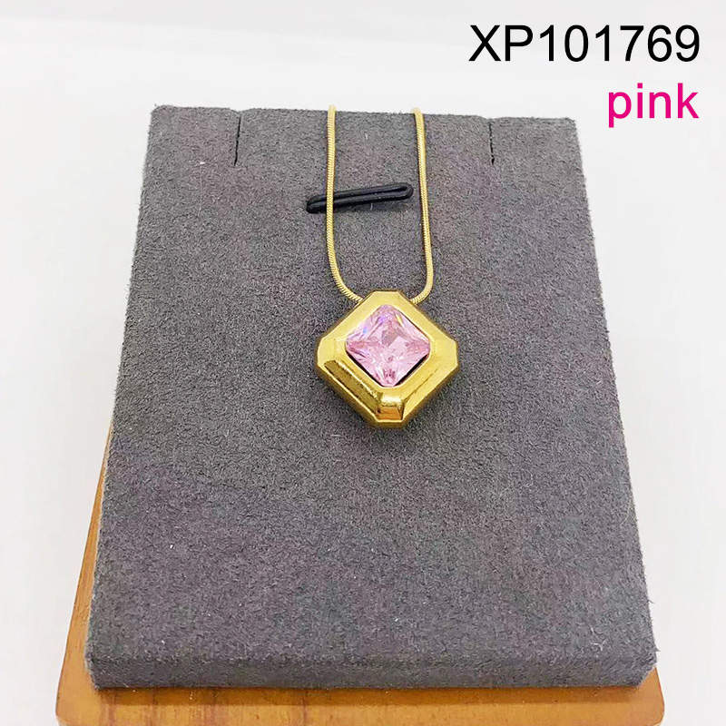 Home > Level B Stainless Steel New Trendy Women Jewelry Square Pink Glass Zircon Golden Pendant