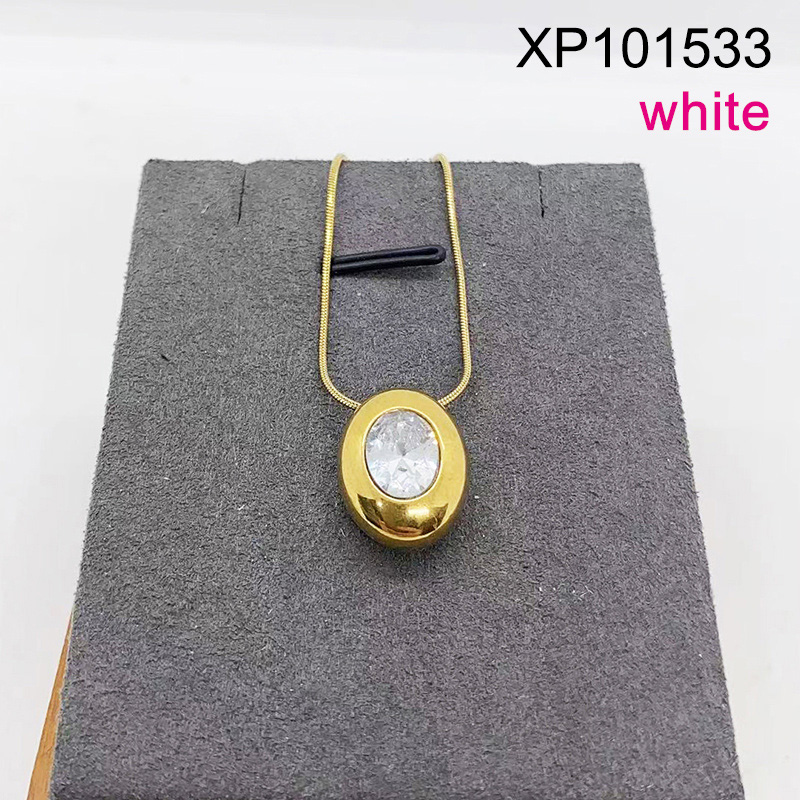 Home > Level B Stainless Steel New Trendy Women Jewelry Oval White Glass Zircon Golden Pendant