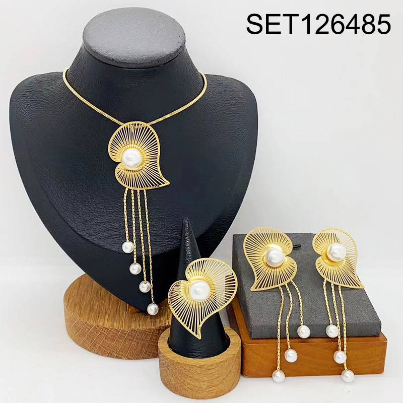Level B Stainless Steel New Trendy Women Jewelry Pearl Style/Plastic Beads Heart Golden 3pcs SET